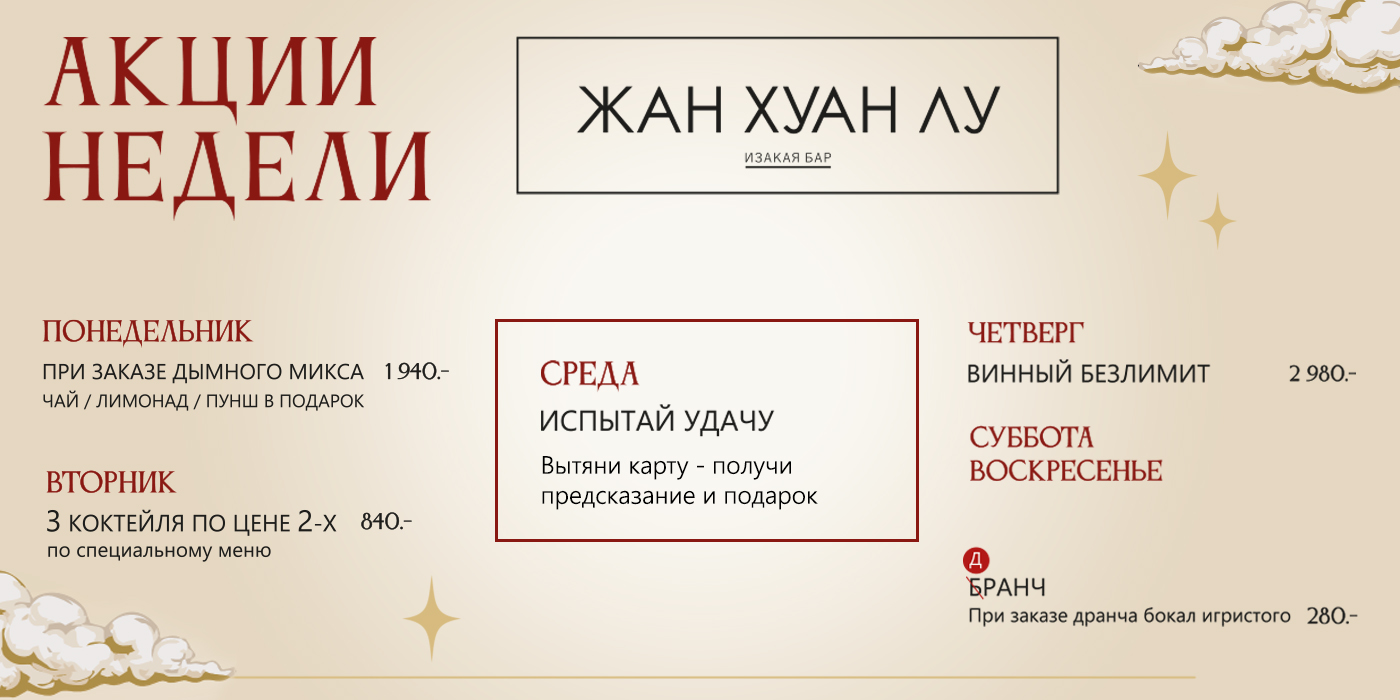 «Жан Хуан Лу» — это попытка перенести на российскую почву японский традиционный формат «изакая» — он предполагает наличие в меню большого количества закусок, которые подаются небольшими порциями и стоят недорого.